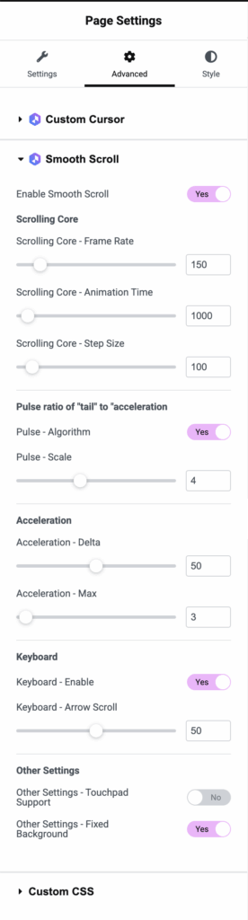 By configuring Smooth Scroll in Global Style or Page Settings, you can improve website navigation and enhance user experience with seamless, fluid scrolling effects.